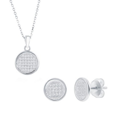 Bella Silver Sterling Silver, Polished & CZ Marquise Necklace & Earrings Set - Silver - 16+2 Inch