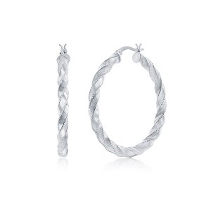 Bella Silver Sterling Silver Polished & Satin 30mm Twisted Hoops - Silver - 1 of 2