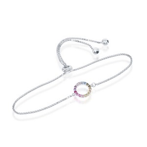 Bella Silver Sterling Silver Rainbow CZ Open Circle With Box Chain Adjustable Bolo Bracelet - Multi - 10 Inch - 1 of 2