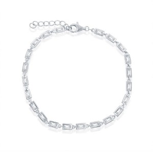 Bella Silver Sterling Silver, Rectangle CZ Linked Bracelet - Silver - 6+1 Inch - 1 of 2