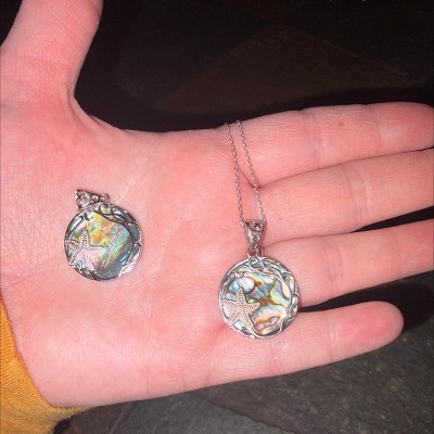 Bella Silver Sterling Silver Round Abalone with Starfish & Filigree Design 18" Pendant Necklace - Multi - 1 of 2