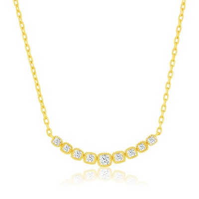Bella Silver Sterling Silver Round Graduating CZ Heart 18" Pendant Necklace - Gold Plated - Gold