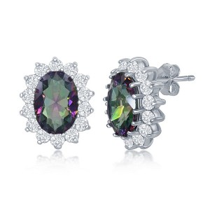 Product Name: Bella Silver Sterling Silver, Royal CZ Earrings - Rainbow - Multi - rainbow, cz, white, oval, silver, earrings, border, mystic, colorful, multicolor, princess diana