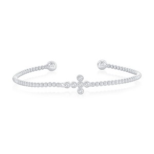 Bella Silver Sterling Silver, Sideways CZ Cross Beaded Bangle - Silver
