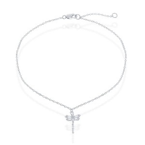 Product Name: Bella Silver Sterling Silver Small Dragonfly Anklet - Silver - 9+1 Inch - dragonfly, animals, nature, insects, clear, white, CZ, anklet, ankle bracelet, silver,