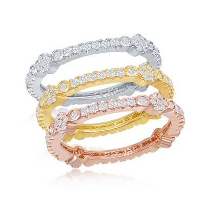 Bella Silver Sterling Silver Tri-Color Prong Clear CZ 1.5mm Eternity Triple Band Ring - Available Sizes:  9 ,  8 ,  7 ,  6 - 1 of 3