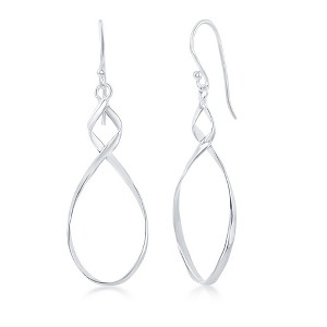 Product Name: Bella Silver Sterling Silver Twist Design Dangle Earrings - Silver - High Polish, Chic, Stylish, Twist Design, Infinity, Love, Fish Hook Clasps, Trendy, Dangling Earring
