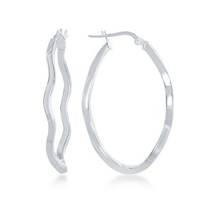 Bella Silver Sterling Silver Wavy Designed Oval Hoop Earrings - Rhodium Plated - Silver - 1 of 2