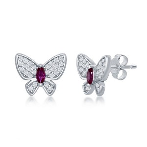 Bella Silver Sterling Silver White & Ruby CZ Butterfly Stud Earrings - Silver - 1 of 2