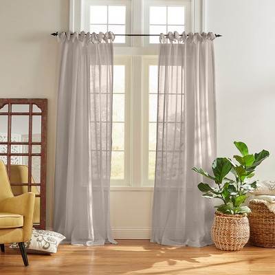 The Bella Tab-Top Ruffle gauze sheer features a 100% cotton texture that has a rich hand and soft drape. Extremely versatile, this panel can be used as typical curtain pair, as a tapestry door curtain, closet curtain or room divider. Perfect for creating a light and airy aesthetic, while adding a touch of fashion in any room of the home. Beautiful ruffled edge can be used for a variety of aesthetics including boho, vintage, country cottage, dorm room, or kids & nursery. Tabs measure 2 inches wide and 3 inches long and are recommended with up to a 1 inch rod for maximum movement. Curtain rod not included. Sold as a single curtain. Machine washable. 100% Cotton.