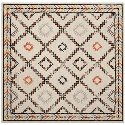 Elevate your space with the timeless elegance of our Hand Tufted Wool Area Rug. Designed to infuse any room with a touch of sophistication, this 5' X 5' square rug features a plush 3/8-inch pile height that offers comfort underfoot. The ivory base is gracefully adorned with a classic pattern that showcases intricate detailing and a harmonious color palette of soft purples, pinks, and contrasting reds within a framework of traditional motifs.