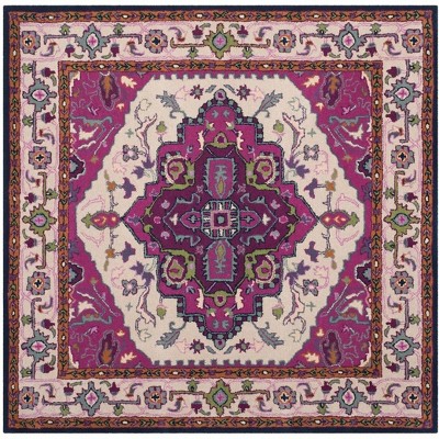 Drawing inspiration from classic motifs, the rug pattern displayed in the image showcases a harmonious blend of intricate florals and geometrics, framed by a delicate border that accentuates its square structure. The central medallion is flanked by complementary symmetrical designs, creating a sense of balance and sophistication.