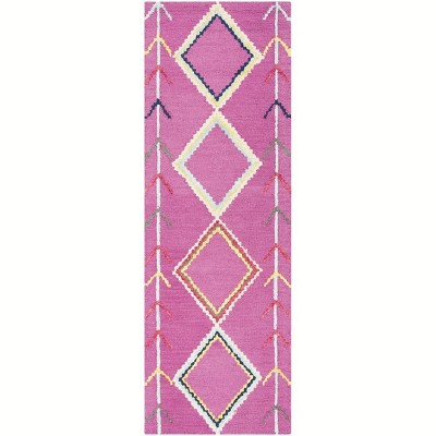Crafted with care in India, this runner radiates with a vibrant PINK and MULTI color palette that breathes life into any hallway, entryway, or living space. The intricate, symmetrical pattern draws inspiration from classic motifs, updated with a modern twist to suit contemporary aesthetics.