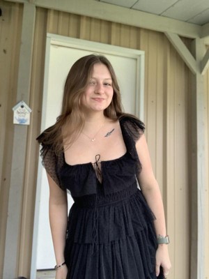 [This review was collected as part of a promotion.] Was looking for a tulle dress and this one is perfect. Very flattering. I would say to size down - I first purchased in a large (which is my normal size) and it was too big. The medium is still roomy but fits much better. Can't wait to wear this to my next wedding!