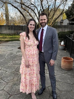 I ordered the floral for my baby shower and I love it so much! It fits true to size and is definitely bump friendly! I definitely wish it was as pink as the picture shows. In person it definitely has pinky colors in it but it’s a little darker in pinks than I wanted. Still will be wearing for my baby shower but definitely know the color isn’t 100% what’s shown online<3