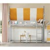 Bellemave Twin Size Loft Bed with LED Light & Bookshelf, House-style Bed Frame with Yellow & White Stripe Tent, Gray.