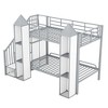 Bellemave Metal Twin over Twin Castle-shaped Bunk Bed with Wardrobe and Multiple Storage, Gray+White