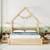 Bring warmth and character to your bedroom with this queen-size house platform bed. Crafted in a charming house-shaped silhouette, it creates a cozy, inviting space while blending effortlessly with modern or rustic décor. Two spacious drawers provide convenient storage for linens, clothing, or everyday essentials—perfect for keeping your room neat and organized.