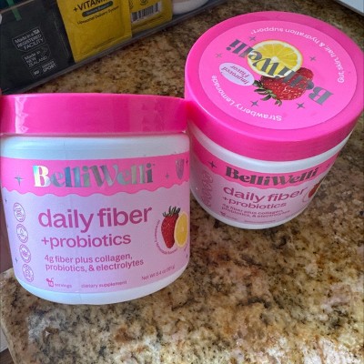 BelliWelli Daily Fiber Supplement + Probiotics, Electrolytes, Collagen, Powder - Strawberry Lemonade - 16 servings