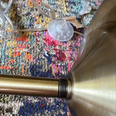 It is a truly pretty lamp but was missing the nut that keeps the pole attached to the base???the poke is smaller than base piece where it’s supposed to be screwed on to to hold it upright!! So so annoying. Now I have to box it up drag to Target & order another & hope this one is intact!!!! Very annoying. Good thing Target is great in customer svce