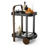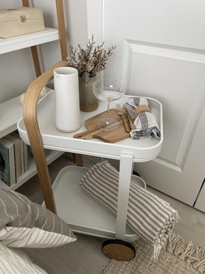 - TWO-TONED WOODEN DETAIL: This modern bar and serving cart features a two-tone bentwood detail, adding warmth to your space, while still being able to complement surrounding decor