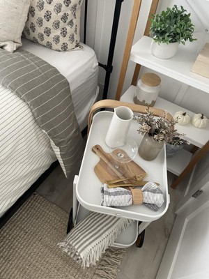 We bought it for our daughter’s birthday. She loved it. Cute & handy bar cart and versatile, removable trays for breakfast in bed!