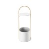 I bought this for a small bedroom which needed a very narrow sidetable to accommodate the door opening. It has made the bedroom much more practical as it can accommodate a lamp, enabling someone in bed to turn on the light easily, as well as books in the lower storage basket. Although I have other Umbra products, I bought this due to its size. For something so narrow, it is really stable, probably due to the handle, so there is no danger of the lamp falling. It has been so useful that I bought one for a relative whose child's bedroom has the same space issue and they are really delighted.