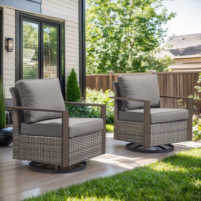 Durable PE Resin Wicker: Crafted with premium, thick PE wicker and powder-coated steel, this patio rocking chair set is designed to endure the rigors of outdoor conditions. The materials are not only weather-resistant but also easy to clean and maintain, making them perfect for year-round outdoor use