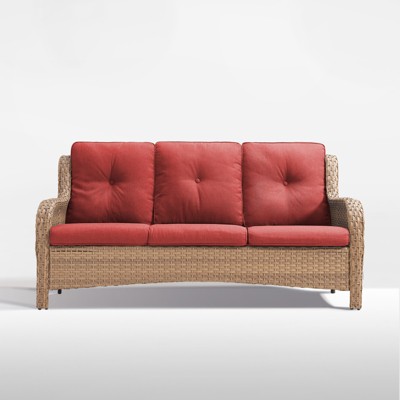 POCASSY 50" Wide Wicker Outdoor Loveseat Sofa with Weather Resistant Yellow Rattan for Porch, Balcony, Beige Cushion