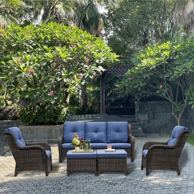 - This large comfortable outdoor sofa fits 3 people, allowing you to enjoy leisure time with friends and family. Suitable for most places such as patio, garden, and backyard. The thickened high-density cushion provides you with strong lumbar support for better comfort. Hand-woven wicker makes the whole set more sturdy, you do not need to worry about the wicker falling off after a long time of use. The wide armrests and a deep seat make the suit more comfortable and modern. The fabric of the cushion provides excellent water and UV resistance. The fabric is eco-friendly and dries quickly after a sprinkle or rain. Cushion Durability: Water Resistant; Mold / Mildew Resistant; Fade Resistant; Stain Resistant; Weather Resistant; UV Resistant; Year Round Use