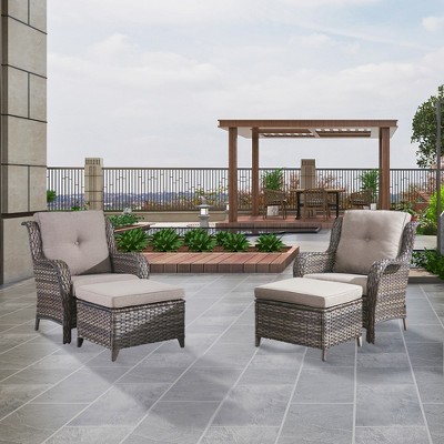 - This large comfortable outdoor sofa fits 3 people, allowing you to enjoy leisure time with friends and family. Suitable for most places such as patio, garden, and backyard. The thickened high-density cushion provides you with strong lumbar support for better comfort. Hand-woven wicker makes the whole set more sturdy, you do not need to worry about the wicker falling off after a long time of use. The wide armrests and a deep seat make the suit more comfortable and modern. The fabric of the cushion provides excellent water and UV resistance. The fabric is eco-friendly and dries quickly after a sprinkle or rain. Cushion Durability: Water Resistant; Mold / Mildew Resistant; Fade Resistant; Stain Resistant; Weather Resistant; UV Resistant; Year Round Use