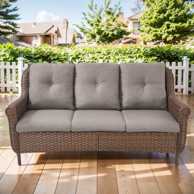 Belord 79" Patio Couch, All Weather Brown Wicker Outdoor 3-Seater Sofa with Wide Armrest and Thick Cushion