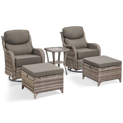 POCASSY Gray Wicker Swivel Rocking Chairs, Oversized Rocker Patio Chairs Rattan Glider Chairs with 4" Thick Seat Cushion