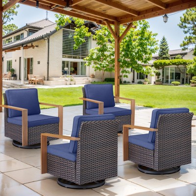 POCASSY Outdoor Swivel Glider Chairs Set of 2, Patio Wicker Swivel Rocking Chairs with Powder-Coated Steel Armrest, Brown Wicker Gray Cushion