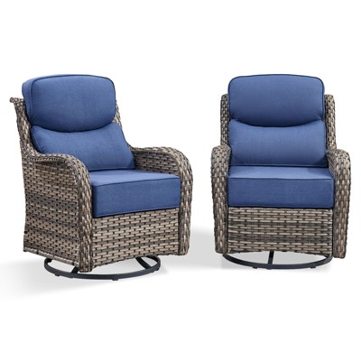 Belord Outdoor Swivel Rocker Patio Chairs Set of 2 with 6 Inch Thick Cushions, Wicker Patio Furniture Set Swivel Rocking Glider Chairs with High Back