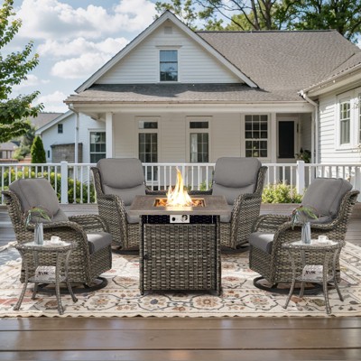 Belord Patio Swivel Chair Set of 4 with 30" Propane Fire Pit Table, Patio Furniture Set with High Back Swivel Rocker Patio Chairs and Firepit Table