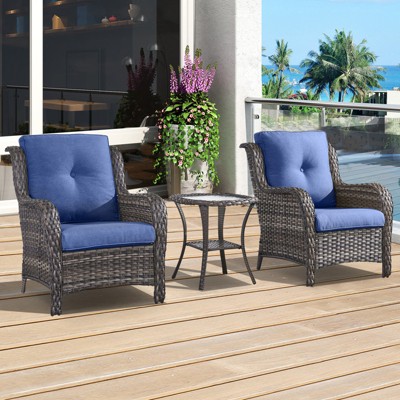 - Outdoor wicker rattan chairs include seat and back cushion covers made of 100% olefin, a durable, fade-resistant, and water-resistant fabric that dries quickly after spills or rain