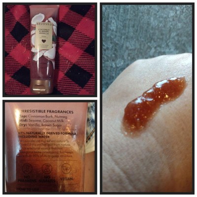 [This review was collected as part of a promotion.] Love Beauty and Planet Beloved Coconut and Warm Vanilla Sugar scrub does not smell coconut and warm vanilla. It has top notes of cinnamon bark and nutmeg. Mid notes of sesame and coconut milk. Dry note of vanilla and brown sugar. I personally smell the cinnamon bark and the nutmeg more. It is a little more thicker than most sugar scrubs it's a little bit tacky but it is effective at exfoliating. My only complaint is that it does not smell a vanilla and brown sugar.