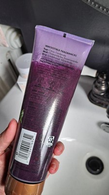 I bought this as I could no longer find the love, beauty, planet lavender scrub I usually get. This product is really gross. It's like goopy grape jelly and isn't really a scrub. There's also a lot of dye in it, so it turns your tub purple. I used it once and tossed it.