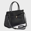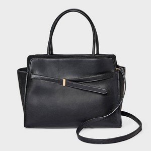 Take your accessory collection up a notch with this Belted Top Handle Satchel Handbag from A New Day™. This satchel handbag features a spacious main compartment along with interior and exterior pockets to offer plenty of space for your cosmetics, phone and other belongings. The magnetic closure helps keep the contents secured, and it showcases an unstructured silhouette with belted detailing on the front for sleek style. Plus, you can carry it multiple ways using the double handles and adjustable, detachable strap.