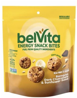 - One 5 oz bag of belVita Energy Snack Bites, Banana, Dark Chocolate and Sunflower Seed