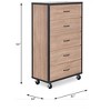 Rectangular Chest, Storage: 5 Drawers, Wood Case-Frame with Contrast Trim & Nailheads, Industrial Caster Wheels, Drawer: Side Metal Glide DrawerKD, Rectangular Chest, Storage: 5 Drawers, Features: Wood Case-Frame, Contrast Trim, Nailheads, Caster Wheels, CONSTRUCTION, Wooden Case-Frame: Wood (Paper Veneer, PVC Veneer, 2.5mm MDF, PB), Base: Caster Wheels (Safety Lock Included)Drawer: Glide Side Metal (3/4 Ext.), Dovetail NOT Included, Fully Finished Inside (Felt-Lined NOT Included), Safety Stop Included, Manual-Close, Hardware: Single Pull HandleMaterial: Wood, Veneer (Paper), Composite Wood, Paper Veneer, Veneer (PVC), MDF, PB, Caster Wheels
