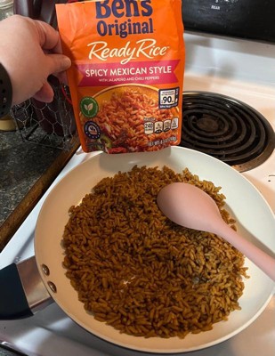 BEN'S ORIGINAL Ready Rice Spicy Mexican Style Flavored Rice helps you enjoy hassle-free dining with a taste of deliciously seasoned, Mexican-inspired rice in just 90 seconds. This Mexican rice pouch offers pre-cooked long grain parboiled rice with the spicy and savory flavors of tomatoes, jalapeño peppers, and herbs for a cooked rice side dish you will love. BEN'S ORIGINAL Ready Rice comes in a BPA-free microwavable rice pouch that makes cooking easier by eliminating prep or cleanup. To get this flavored rice ready to serve, all you have to do is place the Mexican rice pouch in the microwave and cook it for 90 seconds, or pour the contents into a skillet and heat thoroughly. Pair this seasoned rice with chicken, Mexican dishes, or serve it plain for a quick bite. This parboiled rice has no artificial flavors, no colors from artificial sources, no trans fat, or cholesterol. BEN'S ORIGINAL is dedicated to creating meals and experiences that offer everyone a seat at the table.