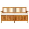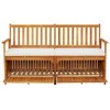 - This storage bench, made from solid acacia wood, mixes style with practicality. Its gorgeous brown color and smooth finish give a friendly feel, making it ideal for both indoor and outdoor spaces while serving a practical purpose. Durable Material: Crafted from solid acacia wood, this bench is built to last and is completely stable. This material adds to the visual appeal while holding up against wear and tear, making it perfect outdoors. Substantial Storage Space: Loads of internal storage lets you stash cushions, gardening tools, or outdoor bits. Keeps your area neat and essentials close at hand. Contemporary Style: With its clean lines and polished finish, this bench fits right into modern spaces while adding a dash of elegance. Whether in the garden, patio, or hall, it boosts the decor. Comfortable Seating: With a removable cushion, it gives you a comfy spot to kick back. The zip closure makes it easy to take off, perfect for keeping it clean and straightforward. Versatile Use: Designed for both indoor and outdoor areas, this bench is spot on for gardens, living rooms, or entranceways. Adapts to whatever you need, whether that¡¯s offering extra seating or being a useful decor piece. Color: Brown Shape: RectangularMaterial: Wood Solid Acacia woodFinish: Oiled Indoor/Outdoor: Indoor / OutdoorCover Included: NoRoom: Living RoomMaximum Number of People: 2Dimensions: 58.3 x 58.3 x 33.1 in (W x L x H)Leg Height: 16.9 inWeight: 57.76 lbsSeat Depth: 18.7 inSeating Capacity: 2Swings: NoDelivery Contains: 1 x Bench, 1 x Seat cushionAssembly Required: YesRecommended Number of People for Assembly: 2