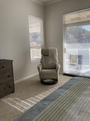 The Taupe color goes with pretty much everything. We can watch TV or look out over the Las Trampas Hills. The swivel recliner is a comfortable chair to relax in. Very sturdy