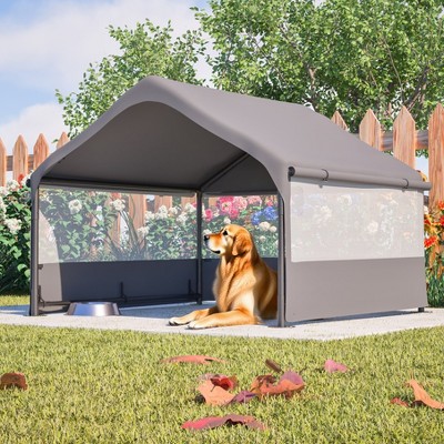 SEVOBAL Outdoor Large Wooden Cabin House Style Wooden Dog Kennel with Porch,Multicolored, (67"*32.7"*32.3")