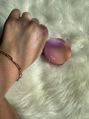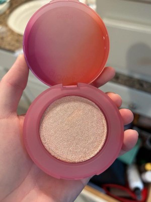 [This review was collected as part of a promotion.] Im obsessed. This highlighter is so buttery soft and glides on. It has like a micro glitter so it’s not chunky it just gloss shines on your skin. I use it as eyeshadow too. Zero creasing and doesn’t give that striking highlighter look it’s very natural. So versatile!