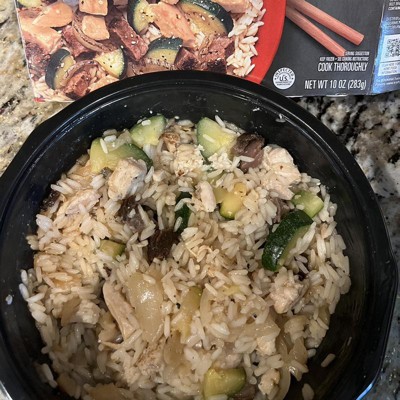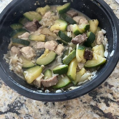 The meat pieces are just skimpy little end scraps. The rice is undercooked and slightly crunchy, which is not healthy to eat. Zucchini had crunchy bits of sand on it, not cleaned properly. Target, please kick this big corpo brand to the curb and get some better options on the shelf. This product is a scam and a shame, and not even cheap for what's given. It is NOWHERE near as much food as shown on the photo. False advertising. Would like a refund really but what a hassle.