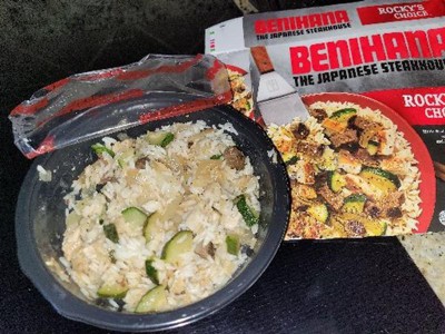 I’ve enjoyed frozen dinners from PF Chang’s, so I was confident about a Benihana’s Rocky’s Choice Dinner…. No, no, no, no, and no. Everything was wet and soggy and I’m a texture sensitive, so eat bite was traumatizing. I little had to separate out the onions because I thought the zucchini pieces were slimy onions. It initially tasted like wet cardboard and teriyaki sauce didn’t help. I’m running back to PF Chang’s frozen entrees.