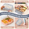 - LEAK-PROOF TECHNOLOGY: Meals are kept fresh and mess-free with separate compartments and a tightly fitting leak-proof lid. The 2 kid-friendly latches are easy to open and close, and this bento box lunch container is easy to pack in a backpack for school and activities.